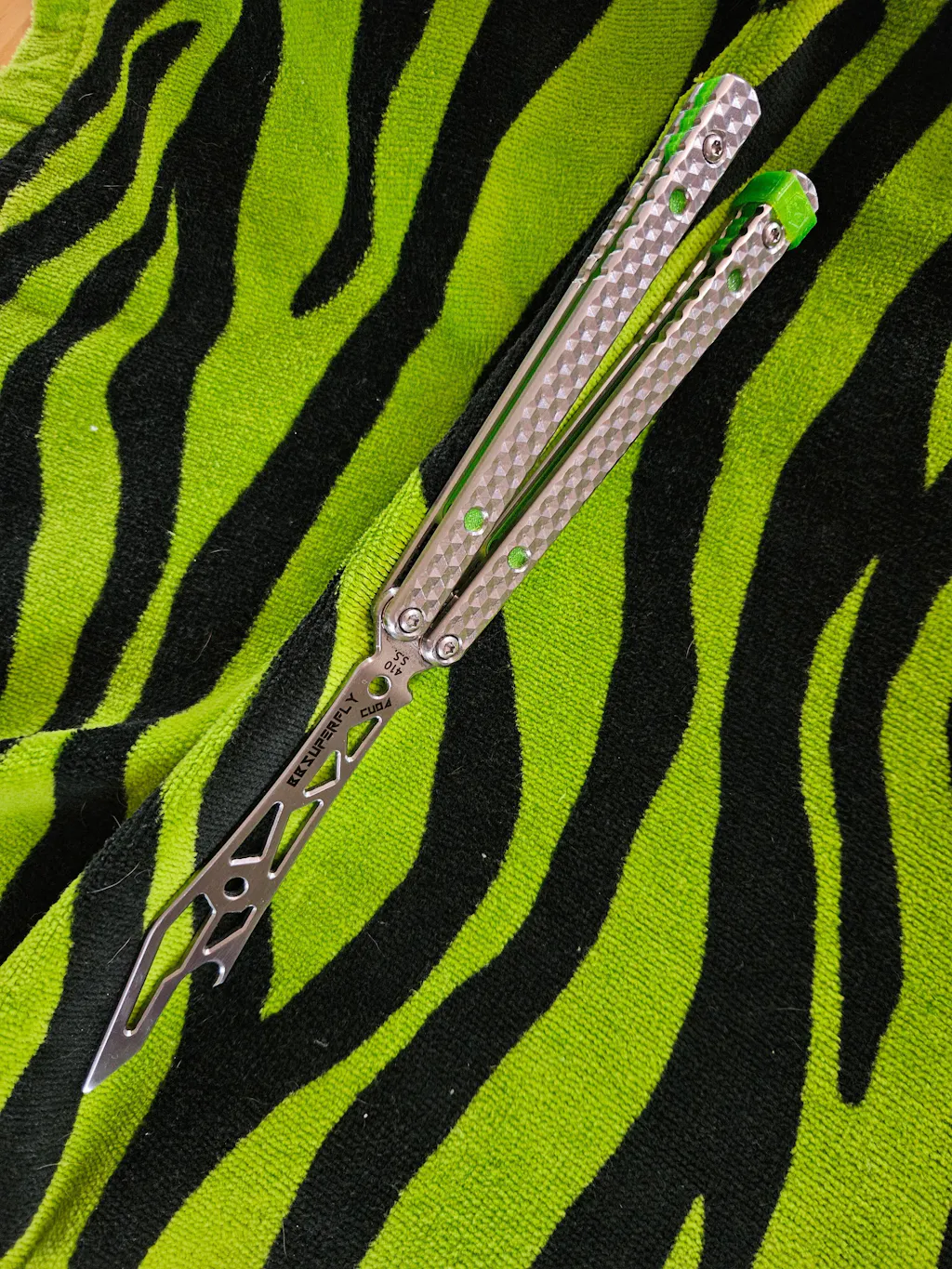 Add a pop of color to your BBbarfly SuperFly balisong trainer with these polyurethane Zippy handle inlays.