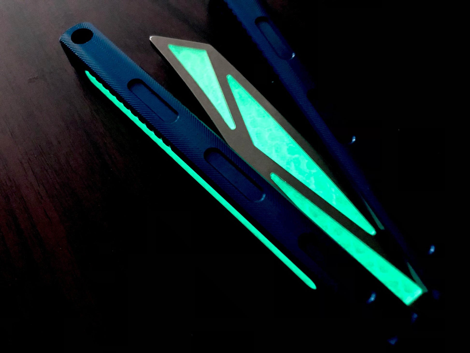 These Zippy blade inserts and handle inlays are designed for the MachineWise Prysma balisong trainer. This mod silences the ring and adds tip weight to the blade for increased momentum. Optional handle inlays modify the grip, and optional speed channel inlays silence the ring from handle resonances.