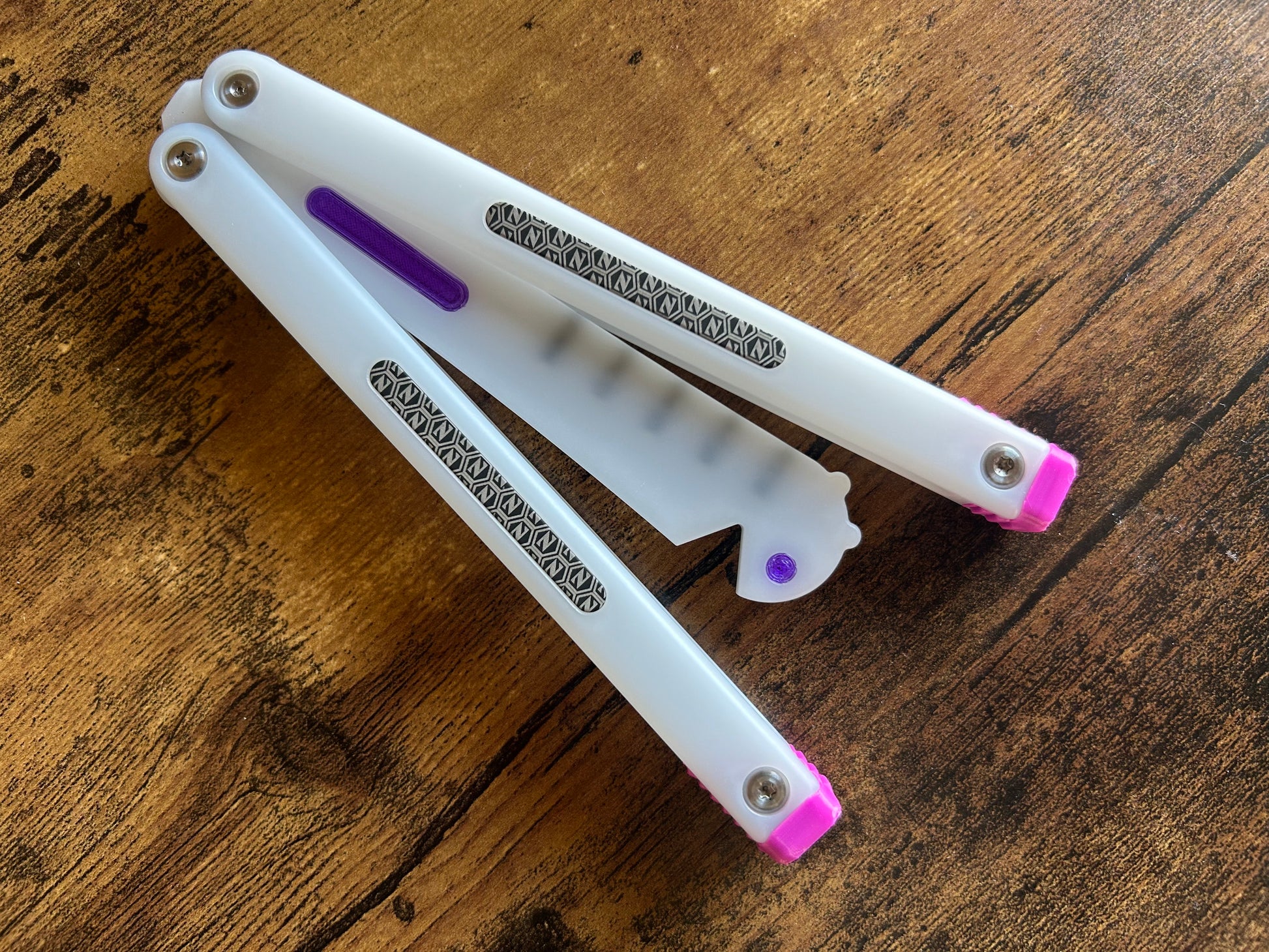 The Frank-Z is a plastic balisong trainer collaboration brought to you by none other than LDY and Zippy. Now, you can get the LDY Frank butterfly knife trainer with cosmetic Zippy blade inserts and Zippy extensions for longer handle length and improved durability. Plus, you can reduce the volume with optional Zippy silencers.